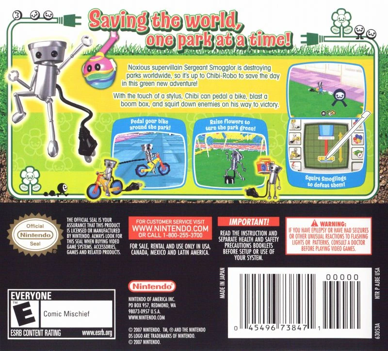 Chibi-Robo! Park Patrol (咲かせて!ちびロボ!【Make It Bloom! Chibi Robo!)is the second Chibi-Robo! game released and was released for the Nintendo DS. It focuses on making a Park grow with Flowers.