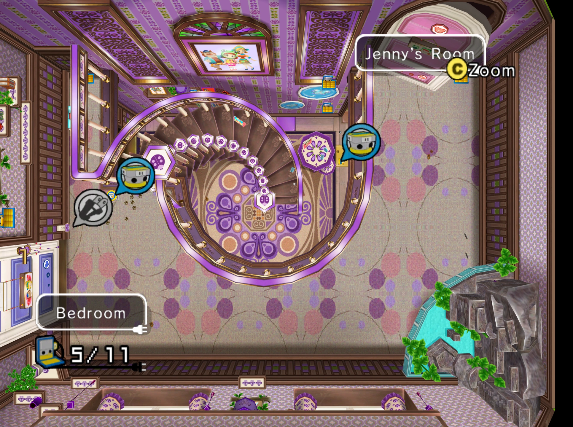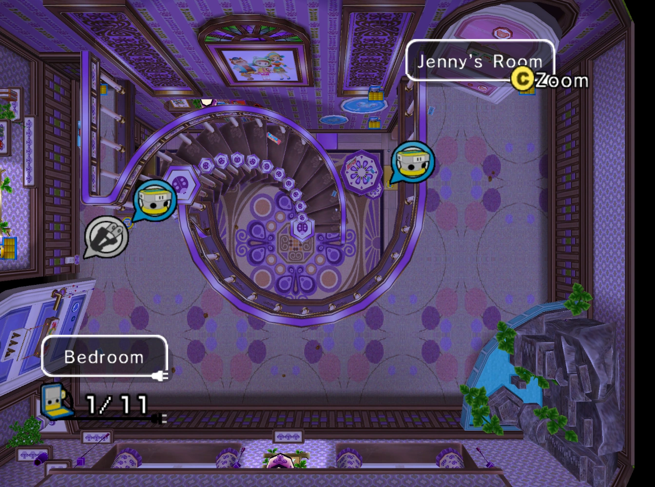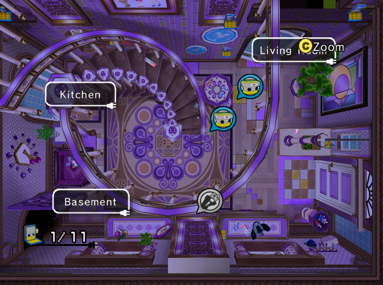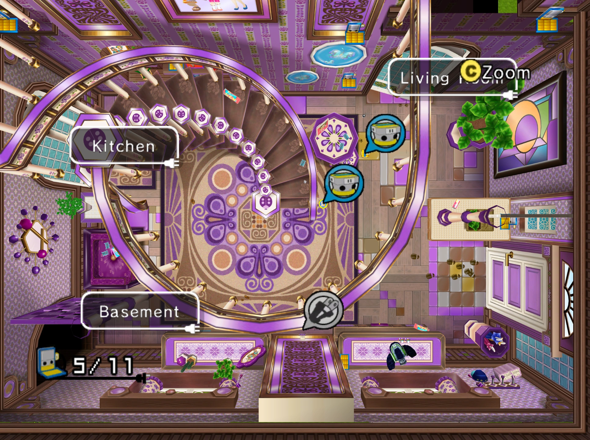 The Foyer is a room in the Sandersons' house. It is the training grounds of the Free Rangers. It consists of two floors. When Chibi-Robo first enters the room to discover the source of a mysterious sound, he is attacked by the Free Rangers. When Chibi-Robo gets across after obtaining the Mug, the Free Rangers realize that Chibi-Robo might not be an enemy. Slightly later on in the game, at night, Jenny can be found weeping outside the Bedroom.
