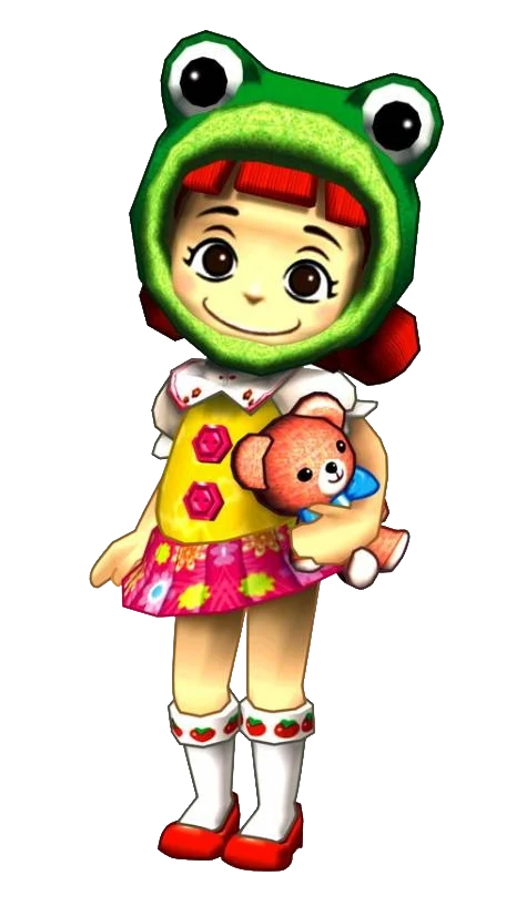 Jenny first appears in the game's opening, where the entire family is celebrating her 8th birthday. She seems to be unable to speak aside from croaking like a frog, and expresses distaste for the hat her mother gives her as she's already wearing a frog hood. The family dog, Tao, gives her a bone that she seems to like, and her father then reveals his gift to Jenny is a Chibi-Robo and activates the new device for her. Excited to see the robot in action, she eagerly accepts Chibi-Robo's impromptu gift of a rose.